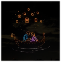 淀川の夜空にディズニーキャラクターが総計約1,500機ものドローンで大きく描かれており、迫力満点でとても感動しました。