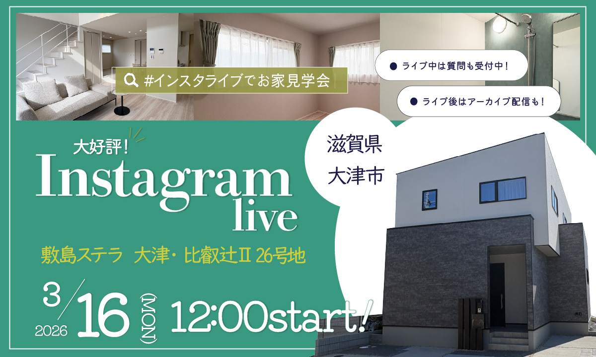 敷島ステラ 大津・比叡辻Ⅱ 26号地モデルハウスにてインスタライブを開催いたします。