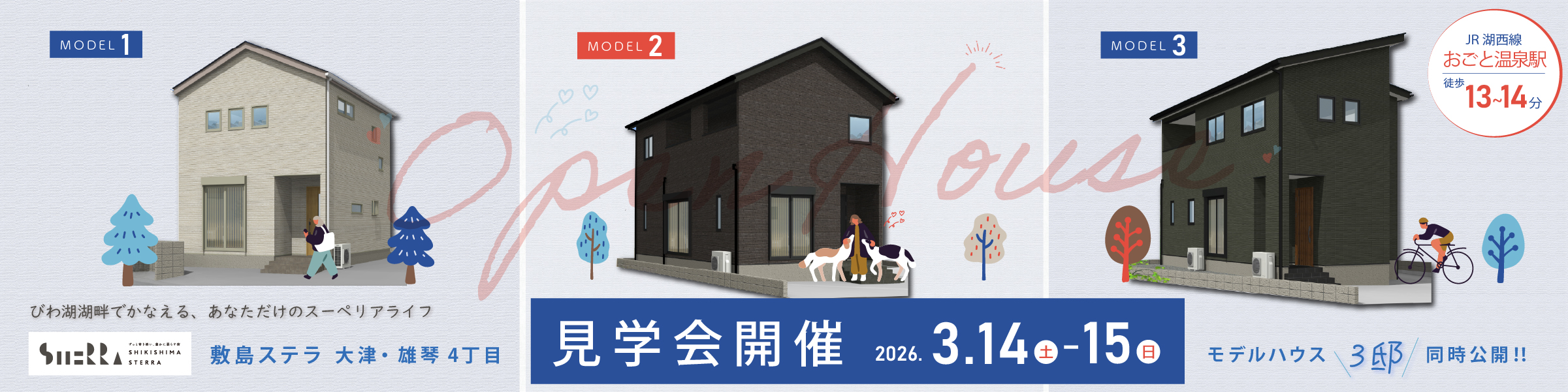 2026.03.14(土)~2026.03.15(日)敷島ステラ 大津・雄琴4丁目にて、新築3邸同時オープンハウスを開催!