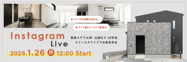2026.01.26(月)~2026.01.26(月)敷島ステラ 大津・比叡辻Ⅱ 10号地モデルハウスにてインスタライブを開催いたします。