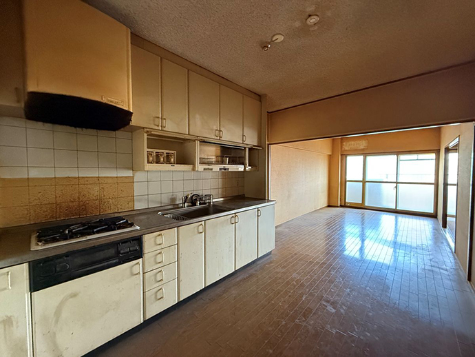 築48年の空間は、細かく区切られた部屋や暗さが目立つ、いわゆる「昔ながらの間取り」。