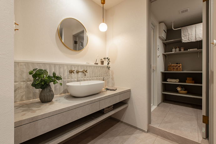 脱衣室と洗面室を分けることで、洗面室をホテルライクな空間として仕上げています。