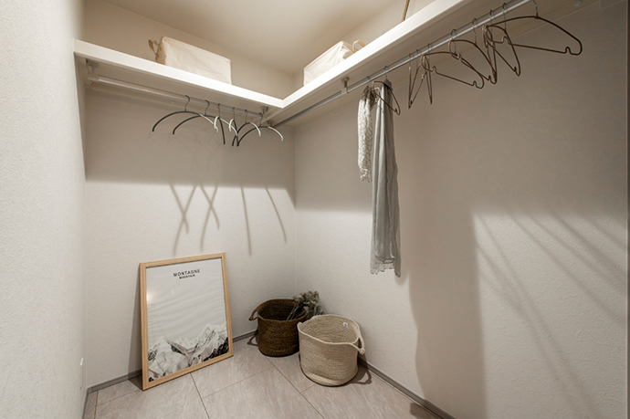 衣類や小物をまとめて収納でき、洗面室とも近いためお出かけや帰宅時にも便利です。