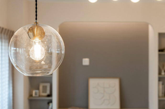 照明は丸みのあるデザインで統一し、やわらかな光が広がる空間に仕上げました。